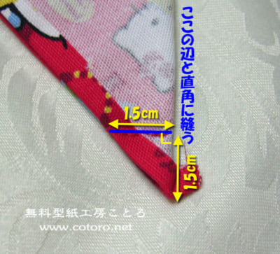※ カドと縫ったところの部分が直角二等辺三角形になります。