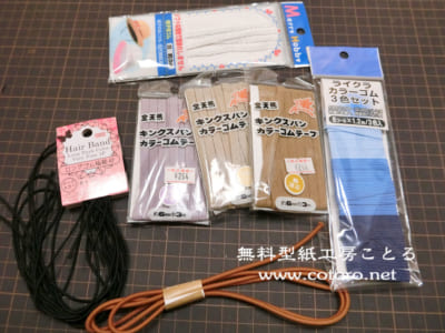 ※ マスクゴムがすぐに手に入らない場合は、髪留め用とか帽子用のゴムひもを使ってみてください。タイツやストッキングを輪切りにしてものもアリです。
