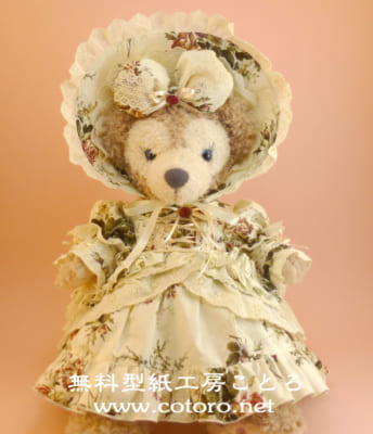 ダッフィー&シェリーメイ(身長43cm)サイズの縫いぐるみに合う「ドレス」の無料レシピです。白い布で作ればウェディングドレス、黒い布で作ればゴスロリ、ピンクの布で作ればロリータ、水色の布で作ればアリス風になります。