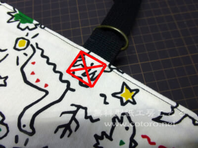 (3)Dカンから1cm~1.5cmの位置を赤線のように縫います。