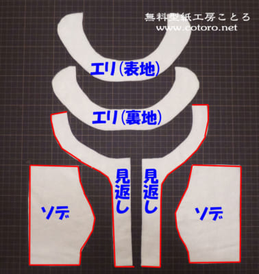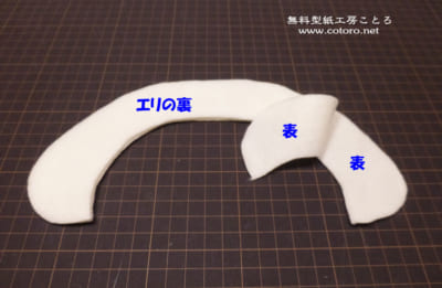 【2】エリを中表に重ねます(表側同士を合わせるという意味)。