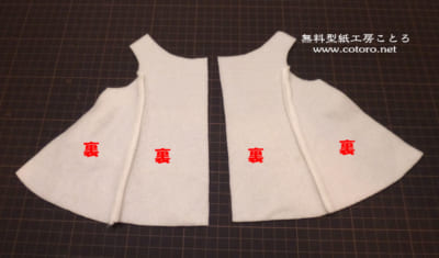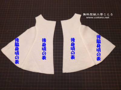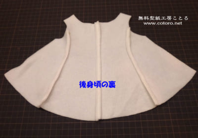 【19】後身頃と後脇身頃も同様にして縫い合わせます。すると下の写真のようになります。