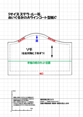 うまく実寸大に印刷できない場合はこちらをご覧ください。また、印刷する環境がない場合は1cm方眼紙を用意し、型紙画像のマス目(1cm幅)を頼りに手書きで写してみてください。