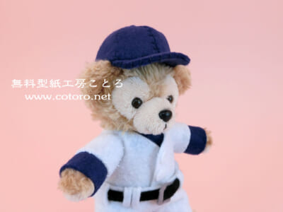 フェルトの野球帽作り方です。手縫いで簡単♪ダッフィー縫いぐるみバッジ、エリーちゃん(ダイソー)に等にちょうどいい小さいサイズと、メルちゃん等にちょうどいい大きいサイズの型紙があります。