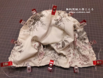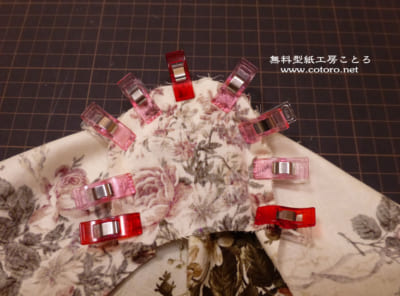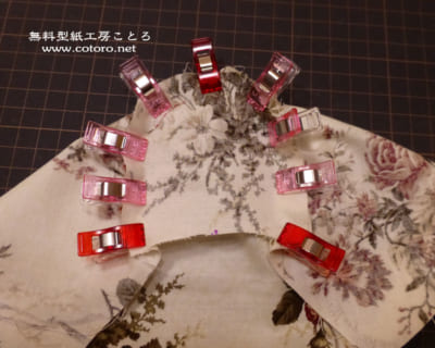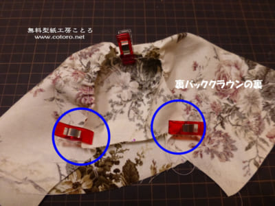 【30】中表に合わせてしるしの部分をクリップなどでとめます。