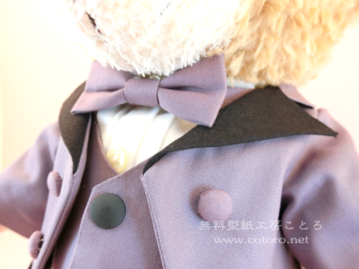 「蝶ネクタイ」の作り方です。縫わずにボンドを使って作るので、とっても簡単♪Sサイズダッフィー等にちょうどいいサイズです。型紙を拡大・縮小すれば、他の縫いぐるみや人間用のコスプレにも!好きなサイズで作れる、サイズ計算ツールあります。