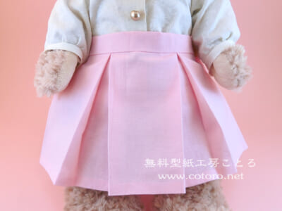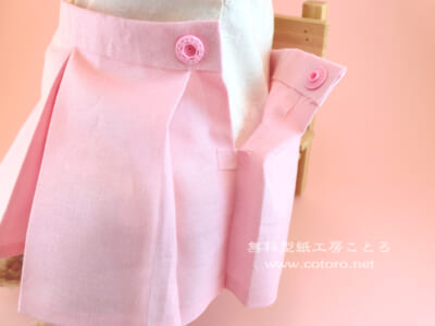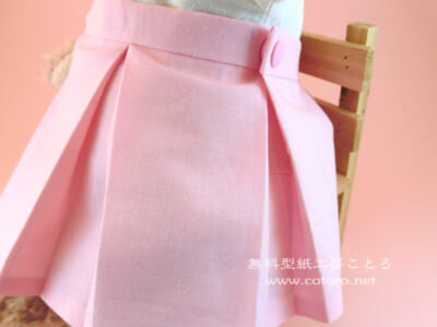 Sサイズシェリーメイの縫いぐるみにちょうどいい、ボックスプリーツスカートの作り方です。布を折ってボンドでとめるだけの、簡単製作です。