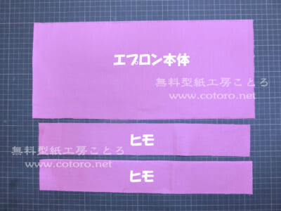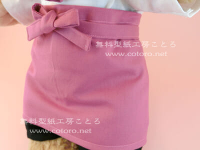 ほつれ止めをする場合は、エプロン本体の周囲全てに行ってください(ヒモにはほつれ止めは必要ありません)。ほつれ止め液がおススメです。縫いぐるみの服なのでほつれ止めを全くしないという考えもアリです。