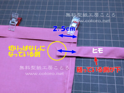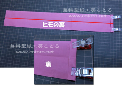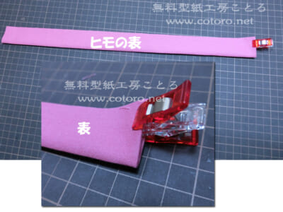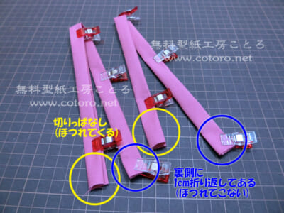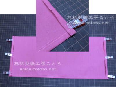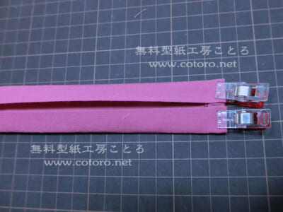 【11】両端を裏側に1cm折ってクリップなどでとめます。