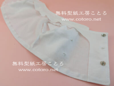 私は着せたときにエリとエリの間が5mm~1cmほど開くようにスナップボタンの位置を決めましたが、ここが2cmぐらい開いていてしまっていてもそれほど気にならないと思います。