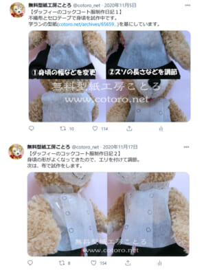 型紙の制作状況は随時ツイッター( @cotoro_net )で公開しています。よろしければフォローしてみてください。皆さんの作品紹介(リツイート)もしています。