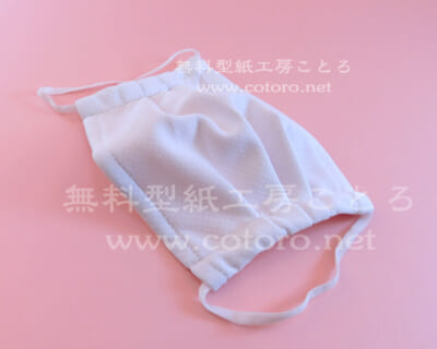 こちらの白いマスクは、汗をすばやく吸収拡散する生地(ナイロン・ポリエステル)で作りました。夏用やスポーツ用のTシャツ生地です。しわになりにくいので、見た目もきれいです。