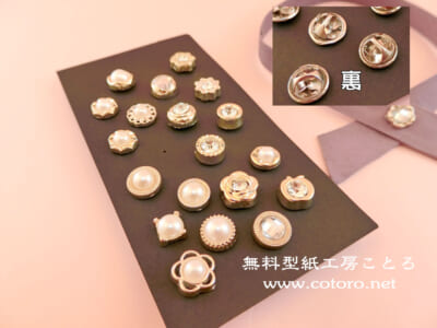 このタックピンは、このページの下の方の「私が使った材料の詳細」で紹介しています。
