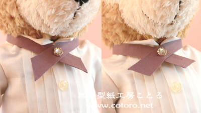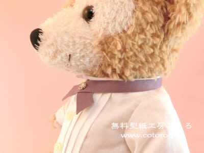 フォーマルな印象の「クロスタイ」の作り方です。縫わずにボンドを使って作るので、とっても簡単♪Sサイズダッフィー等にちょうどいいサイズです。型紙を拡大・縮小すれば、他の縫いぐるみにも。