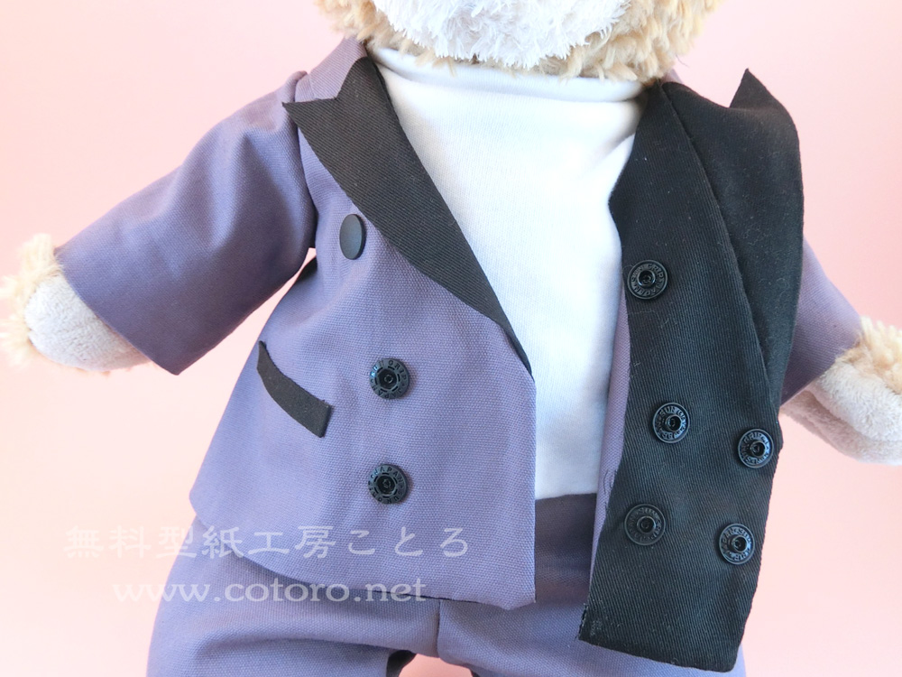↓こちらのタキシードのショールカラー(切れ込みの無いエリ)の型紙と入れ替えられます。