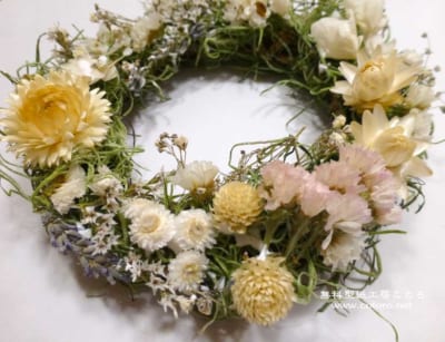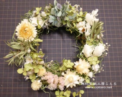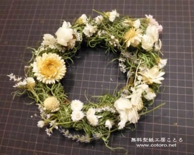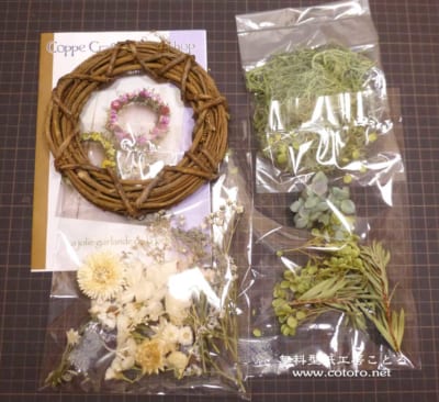 今回使ったのは、Coppe Craft Workshopさんのドライフラワーリース作成キットの「ホワイト系」です。