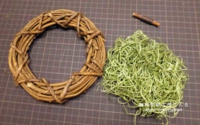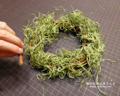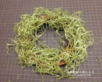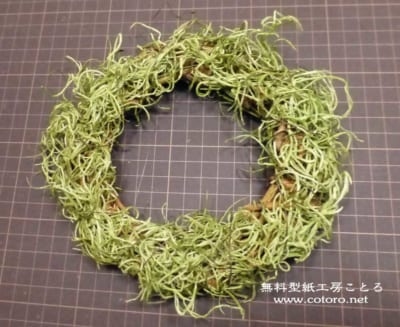リースの背面にはモスを付けないで、見える部分(前面)だけに乗せてみました。
