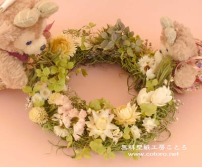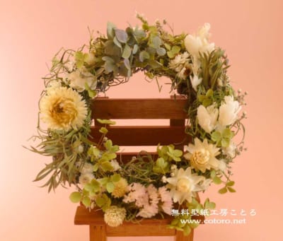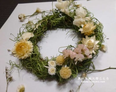 娘と一緒に夏休みの工作にドライフラワーリースを作ってみました。