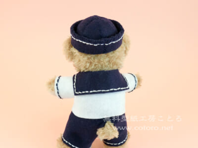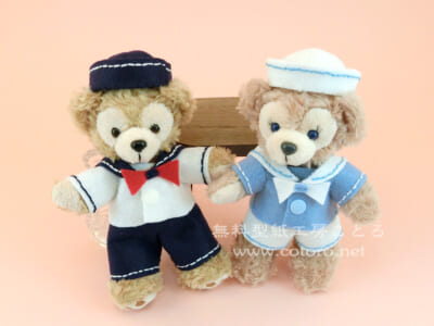 型紙は2サイズあり、小サイズはエリーちゃん(ダイソーの着せ替え人形)やダッフィーやシェリーメイなどの縫いぐるみバッジ(ぬいば)の耳の間にちょうどいいサイズです。大サイズはメルちゃんにちょうどいいです。