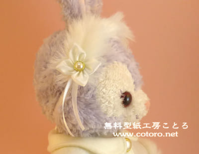 飾りに、サテン生地で作ったつまみ細工のお花とサテンリボンをつけていますが、省略してもいいですしリボンやボタンなどを付けてもかわいいです。