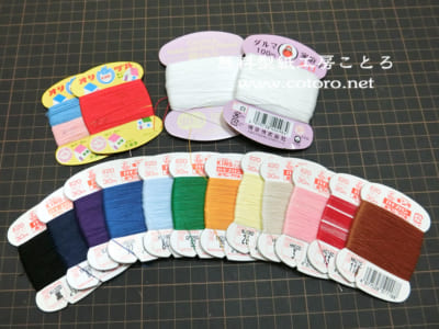 「手縫い糸」や「ボタン付け糸」という名前で売られています。⇒手縫い糸の詳細を、楽天市場で見る、Amazonで見る。