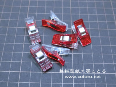 専用品は、「仮どめクリップ」という名前で売られています。⇒仮止めクリップの詳細を、楽天市場で見る、Amazonで見る。