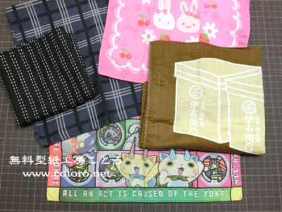 こういう生地がご自宅にない方は、今回はご自宅にあるハンカチ・バンダナ・手ぬぐい(タオル生地でないもの)などの布を使ってみてください。あまり厚くないものが縫いやすいです。