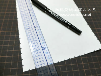 そして、紙の端に定規とペンで1cmごとにしるしをつけます。