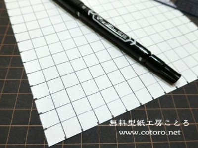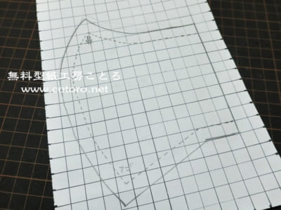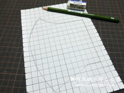 それでは、ここに型紙を写していきましょう。みなさんのために型紙には1cm方眼のメモリが追加してあります。