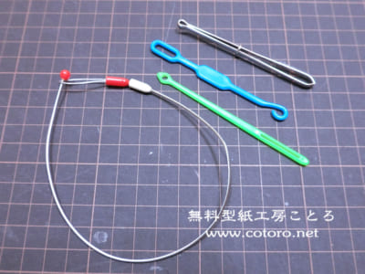 「ひも通し」という名前で売られています。⇒ひも通しの詳細を、楽天市場で見る、Amazonで見る。