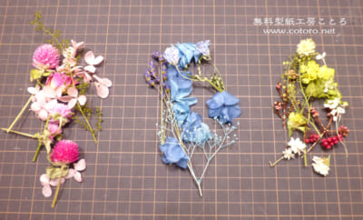 左が、ピンクのお花、真ん中がブルーのお花、右がおまけで入っていたお花です。ブルーのお花の中には、ラベンダーが入っているようで、とってもいい香りがします。