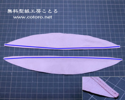 ※このように切り込みを入れておくと次の工程で表に返したときに布が引きつれにくいです。