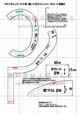 ※スカートの型紙は指定されたサイズの長方形に直接布を切ってください(縫い代は含まれています)。