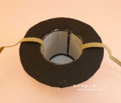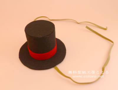 厚紙で形を作り、フェルトをボンドで貼っています。高さを低くすればカンカン帽にもなりそうです。