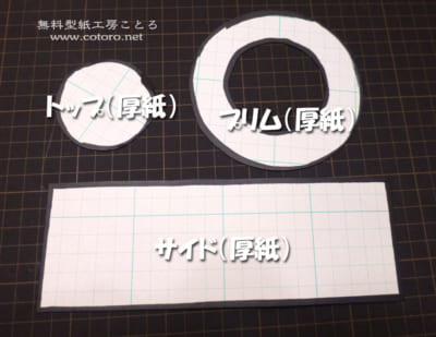 【2】厚紙を切ります。こちらのプリムは1枚だけです。コンパスで円を描けば型紙を印刷して使う必要はありません。