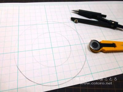 例:半径3cmの円の型紙は、3cm×0.5=1.5cmと計算して半径1.5cmの円になります。
