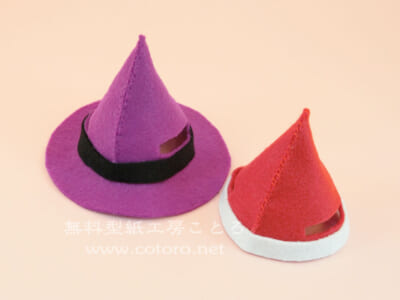 フェルトで作る小さな「トンガリ帽子」の作り方です。手縫いでとっても簡単♪。ハロウィーンやクリスマスのコスチュームにおすすめです。