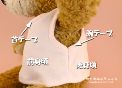 Sサイズダッフィーなどのぬいぐるみにちょうどいい、タンクトップ(ランニング)の作り方です。