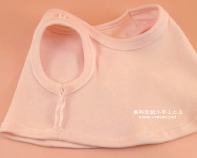 薄ピンク色のスムースニット生地を使いました。綿100%で、近所の手芸用品店のワゴンセールで買ったものです。