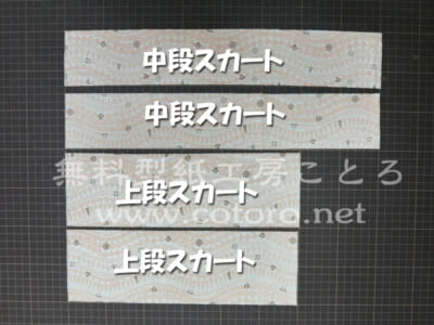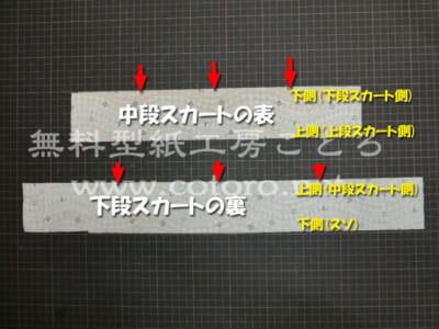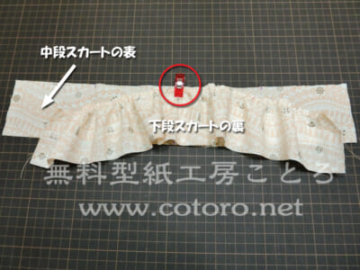 このとき、中段スカートは表が見えるように、下段スカートは裏が見えるようにして置いてください。