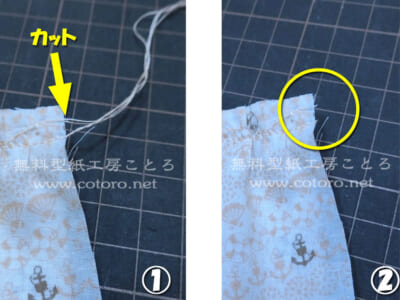 ※ 縫い始めと縫い終わりのミシン糸はまだ切らないでください。工程【12】で切ります。
