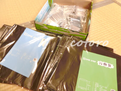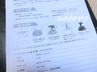 黒い防臭袋や液体を固める薬がみっちり入っています。
