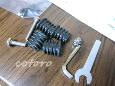 工具も付いていて、予備のパーツもあるので安心ですね。