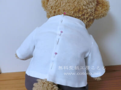 背中にスナップボタンを付けて開閉するようにしてみました。