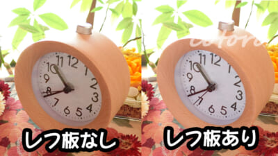 上の目覚まし時計の写真、実はレフ板を使って撮影しました。