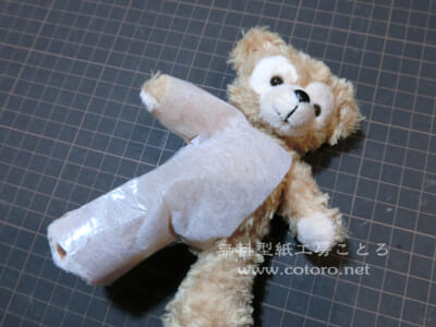 モデルは、ダッフィーの縫いぐるみバッジ(ぬいば)です。